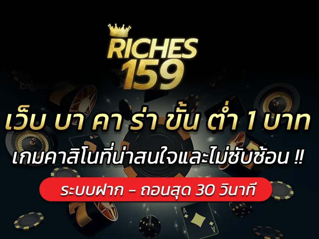 เว็บ บา คา ร่า ขั้น ต่ำ 1 บาท เป็นเกมไพ่ที่ได้รับความนิยมอย่างแพร่หลาย ทั้งในคาสิโนและในโลกออนไลน์ ด้วยความเรียบง่ายและความตื่นเต้นในการเล่น ทำให้ผู้คนจำนวนมากหลงใหลในเกมนี้ โดยเฉพาะอย่างยิ่งเมื่อมีการพัฒนาเทคโนโลยีที่ช่วยให้การเข้าถึงเกมบาคาร่าทำได้ง่ายดายยิ่งขึ้นผ่านเว็บคาสิโนออนไลน์ต่างๆ ที่เปิดให้บริการ หนึ่งในตัวเลือกที่น่าสนใจสำหรับผู้ที่ต้องการลองเล่นบาคาร่า หรือผู้ที่มีงบประมาณจำกัด คือ เว็บบาคาร่าขั้นต่ำ 1 บาท Riches159 ซึ่งช่วยให้ทุกคนสามารถเข้าร่วมสนุกได้อย่างอิสระ โดยไม่ต้องลงทุนจำนวนมาก ทำให้ไม่ว่าจะเป็นผู้เล่นใหม่หรือมืออาชีพ ก็สามารถสนุกสนานและสัมผัสประสบการณ์ในการเล่นบาคาร่าได้อย่างเต็มที่